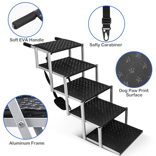 π‘ [Safe and Non-slip] Each dog step is equipped with a dog paw print non-slip surface to prevent your dog from slipping during use. At the same time, the 16.9-inch stairs are equipped with safety carabiners, which can fix the dog steps on the vehicle without shaking, ensuring that dogs can climb safely without injury.