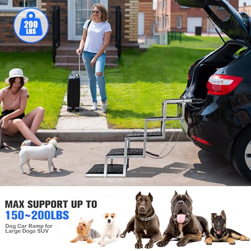 π‘ [Sturdy and Durable] The dog car ramp is made of high-grade metal, and the overall frame is stable, which can bear up to 200 lbs, ensuring that the dog will not shake when going up and down the stairs. The handle with foam can increase friction, provide a double layer of security for the stability of the dog ladder, and also help to avoid scratching the car trunk.