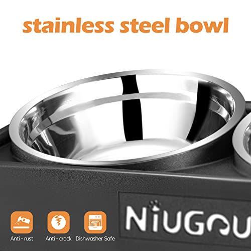 🐕IDEAL FOR ALL LIFE STAGES:🐕 Include two stainless steel bowls. Each dog dish capacity is a maximum of 30 oz or 4 cups of dry dog food. Our Versatile elevated bowl can be adjust to two height: The first size is 7.5cm /2.9inch, which is a good choice for puppy dog and cat; The second size is 24cm / 9.5inch, which is perfect for more mature dogs, an ideal raised dog bowl for medium sized dogs and large dogs.