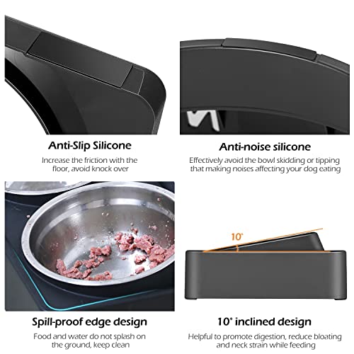 🐈STURDY & ANTI-SLIP🐈 8pcs silicone feet stabilize the dog bowl, increase the friction with the floor, avoid dog from vigorously pulling the bowl during eating causing tipping, make the feeder more sturdy and does not slide easily, also protect your floors. 6pcs anti-noise silicone under the bowl, can effectively avoid the bowl skidding or tipping that making noises affecting your dog eating, which is good for protect your pet digestive system safety.