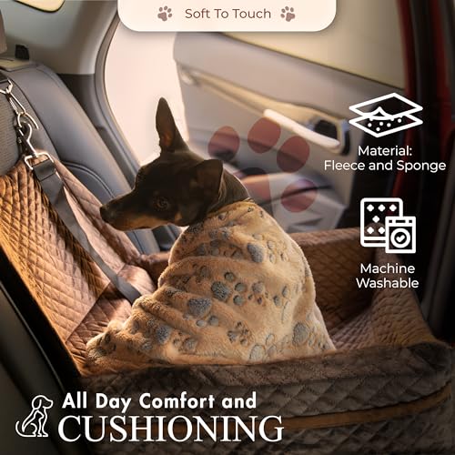 🐾【SAFE ADVENTURES AHEAD!】- Keep your furry friend safe and happy on every ride with our dog car seats! The clip-on safety leash ensures a secure journey. Our design of elevated dog booster seats for small dogs and small cats allows your pet to enjoy scenic views. The non-slip fabric adds an extra layer of security for our dog car seats and cat car seats.