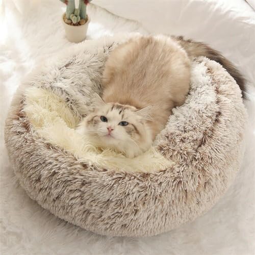 【Pet-Safe Materials】: Made of attractive luxurious faux fur and high-loft recycled polyester fiber. The self-warming fleece fabric and half-cave design keep your kitty or doggy warmer in winter.