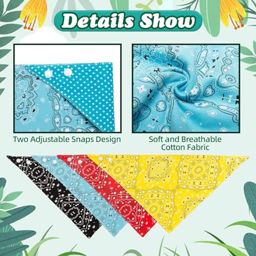 MATERIAL: Our bandanas are made of 100% premium polyester fabric that is durable, skin-friendly, and fade-proof. The adjustable snaps make it easy to tie and comfortable for your beloved pets.