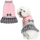FASHION DESIGN: Fashion turtleneck sweater dress design. Available in red and pink. Red sweater with red plaid pleated skirt and bow, pink sweater with Black Plaid pleated skirt and bow, make your dog the most lovely and charming one in winter.