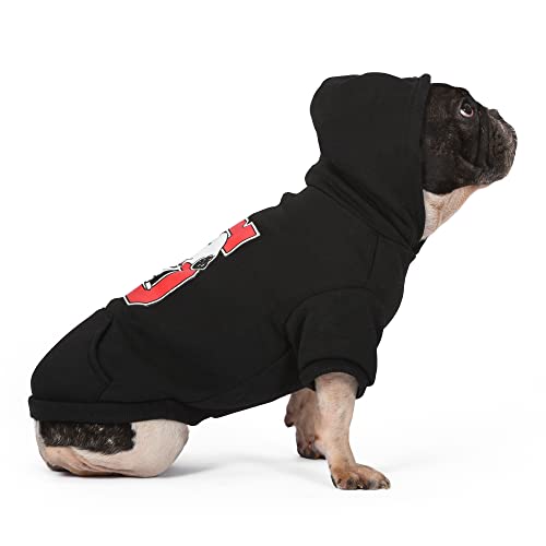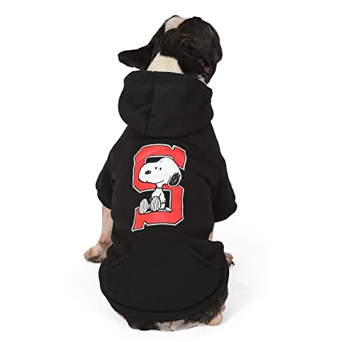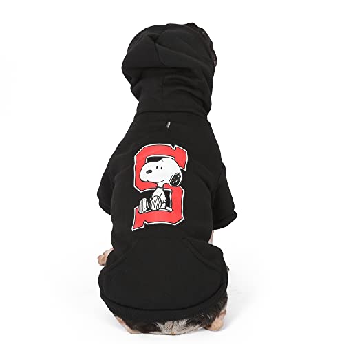 Snoopy hoodies make everything better. Give your dog Snoopy gifts like this Collegiate Snoopy dog sweater dog hoodie from Peanuts Comics. This item of dog clothing dog shirt dog sweater is an officially licensed piece of dog apparel from Peanuts Comics. This dog sweatshirt hoodie is a cute item of dog clothing that is perfect for the fall or winter. The breathable material from which this dog sweater item of dog clothing is made is comfortable for pets to wear. To care for this item of dog apparel, machine wash this dog sweater in cold water with like colors and let it hang dry. Available in multiple sizes, dog sweaters from Peanuts Comics make pets and their parents revel in Peanuts Comics fandom. Please see the sizing chart to find the right size dog sweater dog shirt for your dog. Also be sure to check out other Peanuts Comics pet products like Snoopy toys, Snoopy dog toys, Snoopy stuffed animals, Snoopy plush toys, Snoopy squeaky dog toys, dog chew toys, dog squeaky toys, dog collars, dog harnesses, dog leashes, large dog toys, small dog toys, medium dog toys, Snoopy shirts, a Snoopy dog bed, dog bandanas, Snoopy dog bowls, dog treat jars, Peanuts Woodstock toys, and more! Charlie Brown Peanuts fans and enthusiasts will love sharing their passion for the iconic Peanuts Comics strip and Peanuts series with their pets with these high quality, safe, fun, and cute Peanuts pet products.