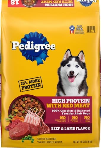 Contains one (1) PEDIGREE High Protein Adult Dry Dog Food Beef and Lamb Flavor Dog Kibble, 18 lb. Bonus Bag