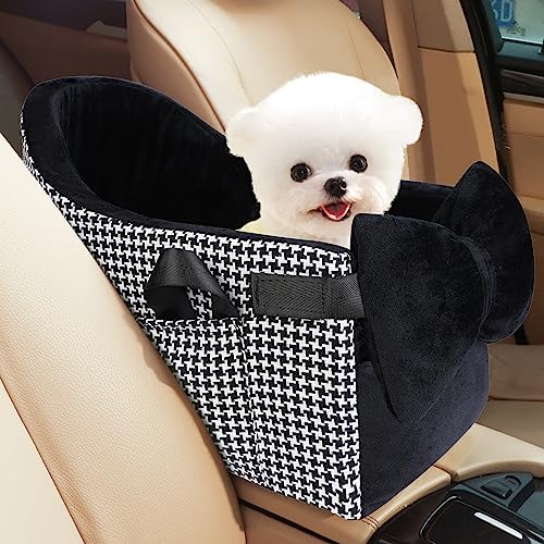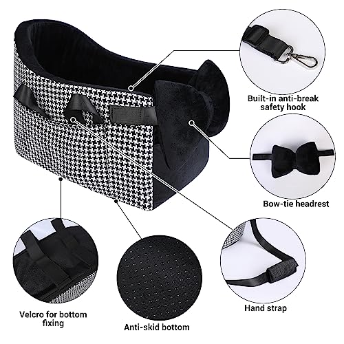 【Comfortable Travel for Small Pet】Our pet car booster seat is specially designed for small pet,aiming to bring our family a more comfortable travel experience. Although it is not equal to a safety seat, it is definitely safer than letting the dog walk around in the car,and it is happier than locking it in a cage alone.It’s easy to install or remove from your car and doesn’t take long.It has a chic bow shape and classic check print,his is also a perfect gift for you or your friend’s fur baby.
