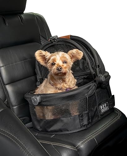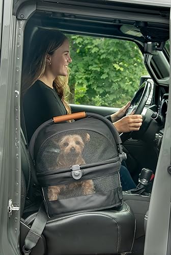 The VIEW 360 Ultra Lite Pet Carrier and Car Seat is the easiest way to transport your pet in comfort and style. It easily converts into a car seat by attaching to your vehicle’s seat belt in seconds, no tools required. A push button entry is located on each side of the carrier giving you easy access to your pet without fumbling with difficult zippers. The carrier features mesh ventilation all the way around so your pet won’t miss any views while you travel. A removable, washable pad and interior tether are included to keep your pet comfortable and secure. The carrier is lightweight and has a padded carry handle to make traveling with your pet a breeze.