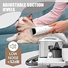 LOW NOISE: At Below 55 dB, this pet grooming vacuum is as quiet as a normal conversation. Your pets will remain at ease during grooming on the Min Suction Mode. For the first use, We suggest grooming your pet with our pet massage comb before trimming and treating your pet with little snacks to avoid your pet getting nervous because of the vacuuming noise.