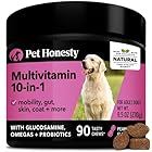 Pet Honesty Dog Multivitamin – 10 in 1 Dog Vitamins for Health & Heart – Fish Oil, Glucosamine, Probiotics, Omega Fish Oil – Dog Vitamins and Supplements for Skin and Coat (Peanut Butter 90 ct)