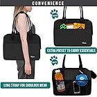 AIRLINE APPROVED PURSE PET CARRIER: Airline compliant and fits under most airplane seats, this tsa approved pet carrier is easy to carry on for any travel and outdoor activity. The handle strap is sturdy and durable, allowing you to carry this dog tote bag by hand or on your shoulder. The pet carrier also comes with a front large pocket and a mesh pocket on the back to store pet stuff, treats, food, toys, or personal items, phone and cards, making it the most convenient cat carrier for any trip.