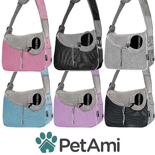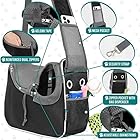CROSSBODY PET POUCH PURSE: The dog front carrier comes with a poop bag dispenser feature pocket, a large pocket on the back to store pet stuff, treat, food, toy, and a mesh pocket on the shoulder strap for essential personal items, phone and cards. The strap is adjustable, sturdy and durable, with a reinforced buckle and D-ring on the side for safety and convenience. This cute cat sling carrier chest is easy to wear and carry. Ideal for hands free situation just like puppy back pack and bookbag.