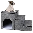 - STORAGE & CONDO – Combine the pet stairs, cozy condo and storage space in one. The first 2 steps of this pet steps are designed as a storage box, you can put dog toys, food, clothes or other pet supplies in. The third step can be used as a condo for cats or puppies.