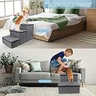 - ADJUSTABLE HEIGHT – Three heights ( 5.9 inch, 11inch and 16.9 inch ) in one stair. With Velcro, you can separate the steps to adjust the height. Perfect for couch, bed, windowsill or stool. Please make sure the size matches your needs before purchasing.