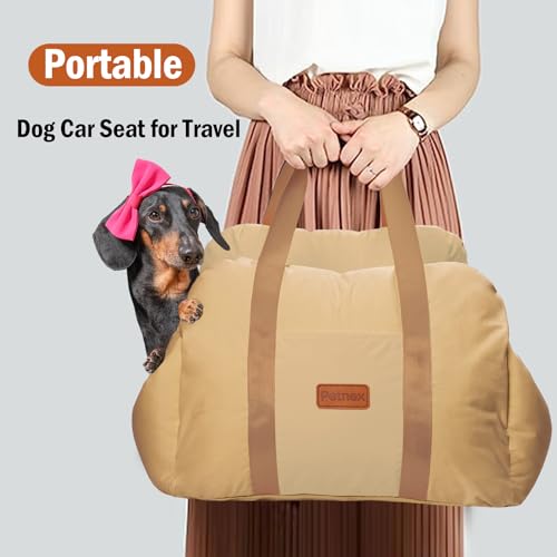 【Premium Material】Petnex dog car seat for small dogs is crafted with durable and waterproof polyester fiber fabric, ensuring it withstands wear and tear. The high-quality PP cotton filling offers your pet a comfortable and supportive seating experience. The reversible cushion offers year-round comfort, with one side featuring polyester fiber for coolness in summer and the other side featuring faux fur for warmth in winter.