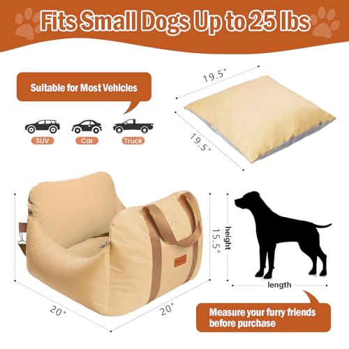 【Kind Reminder】The size of the dog car seat is 20″ * 20″ * 15.5″. It is suitable for small dogs and cats up to 25 pounds. The vacuum-sealed packaging ensures it regains its original shape within 48 hours, and any wrinkles on the polyester fiber fabric surface can be easily smoothed out with a low-heat iron.