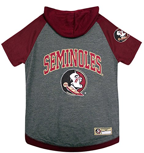 Get ready for Game-Day with this officially NCAA licensed pet Hoodie Tee Shirt This sporty Hoodie Tee Shirt features a screen printed Team Logo and Team Name in vibrant team colors with a sewn on Jock Tag for personalization Designed with a Velcro neck closure and with an easy fit stretch front panel and band bottom to fit your pet with ease and maximum comfort Contrast color sporty over lock stitching is detailed on the neck and bottom Made out of soft and durable materials Pets First Company is an established well-known company in the sports-licensed pet product industry Pets Firsts team of unique and creative designers choose the highest quality materials and the latest technology to provide you with a durable fashionable comfortable and outstanding item We follow the highest standards of safety guidelines Pets First has gained its reputation to provide every pet owner with magnificent licensed pet products from unique and colorful apparel items to fun and playful toys and accessories