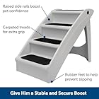 NO SLIPPING: Nonskid feet, fabric tread covers and siderails keep the steps from moving and your pet from sliding