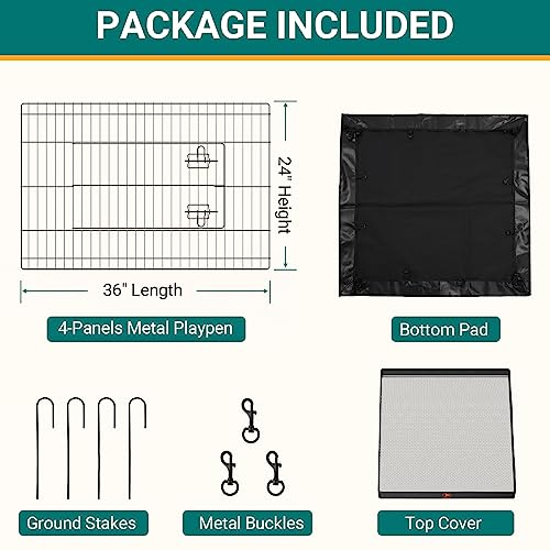 🦆Foldable Puppy Playpen – PJYuCien exercise playpen has 4 connection panels ( 24 “high & 36” wide), and the accessories have 3 buckles for connection, enabling quick installation in 5 minutes. Foldable pet playpens facilitate transportation and placement.
