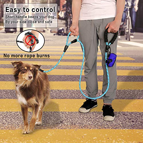 Two handles for total control. Use the standard handle for casual walks, extended sniffing, and loose leash walking; Use the traffic handle for busy sidewalks, bike paths, and crowded areas that require that you have instant, up-close control of your dog.