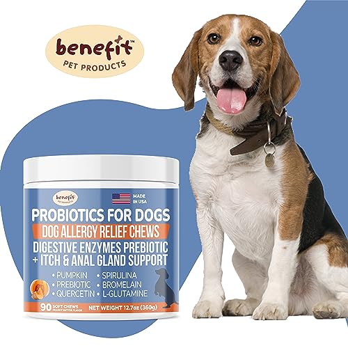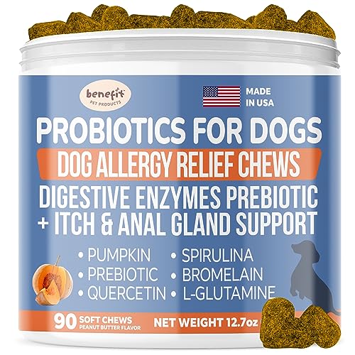 FIGHT DOG ALLERGIES, Say goodbye to itchy skin, these dog allergy chews can combat all dog allergies including inflammation. Packed with dog probiotics for yeast, itchy skin, itchy ears, shedding hair, and hot spots. Conventional pet foods often contribute to itchy skin troubles. With Benefit Pet, say goodbye to mystery meats and fillers, and hello to digestive superfoods like ginger and pumpkin for dogs, and quercetin for dog allergies.