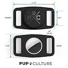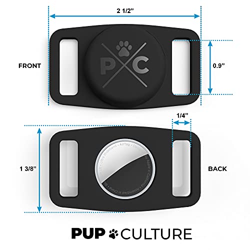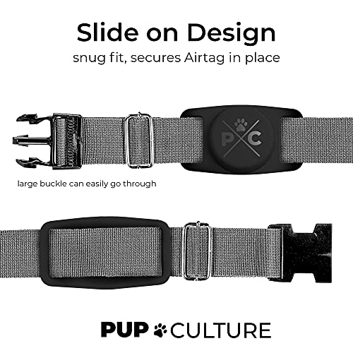 PUP SECURE AND IPHONE FRIENDLY. Tired of hounding your dog when he runs for the hills? Just clip your Apple AirTag to the Pup Culture AirTag Dog Collar Holder for 24/7 dog tracking, straight from your iPhone. The non-dangling case loops through the dog collar, so you don’t have to sweat your AirTag flying off your furry friend.