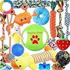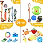 Amazing Dog Toys & Super Fun: 20 Packs cute puppy toys for puppy and small dogs. includes 5 cute dog squeaky plush toys, dog treat dispenser ball, rubber toothbrush toy, 7 rope dog toys, tug of war toy, flying Dog Toy, 3 extra poop bag rolls & 1 bag dispenser as a gift. Now paying less to get more toys than others. More dog toys keep your friend more playtime, more fun, stay happy and healthy.