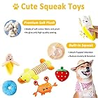 Cute Dog Squeaky Toys: includes Squeaky Dog Toys and 5 Plush Squeaky toys (duck, banana, strawberry and Crab), Dogs like to explore the surrounding environment through sound. These squeaky toys will attract the dog’s interest and satisfy the dog’s hunting instinct.