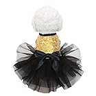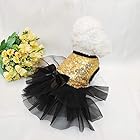 Puppy Princess Sequined Bow Dog Tutu Dress Dog Pleated Shirt for Birthday Party (Medium, Golden)