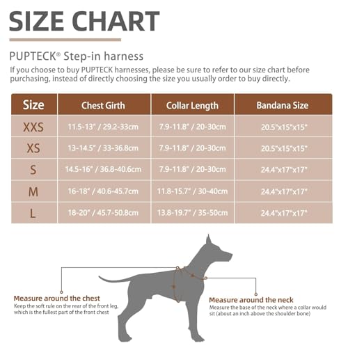 [SIZE GUIDE] – [XXS: Harness Chest 11.5″-13″, Collar Length 7.9″-11.8″]; [XS: Harness Chest 13″-14.5″, Collar Length 7.9″-11.8″]; [S: Harness Chest 14.5″-16″, Collar Length 7.9″-11.8″]; [M: Harness Chest 16″-18″, Collar Length 11.8″-15.7″]; [L: Harness Chest 18″-20″, Collar Length 13.8″-19.7″]; [XL: Harness Chest 20″-22″, Collar Length 15.7″-23.6″]. Please always measure your dog and refer to our brand size chart!