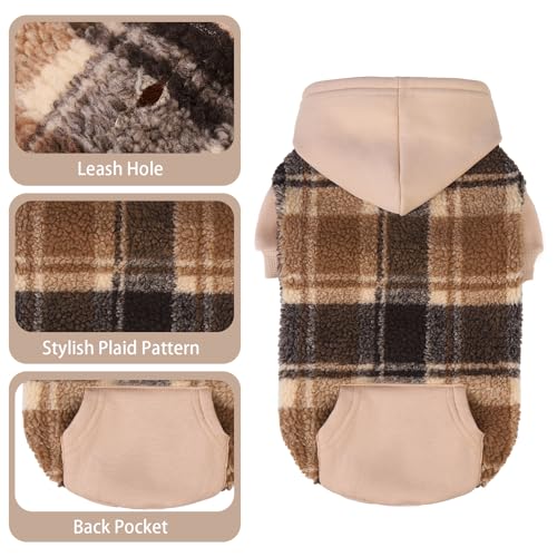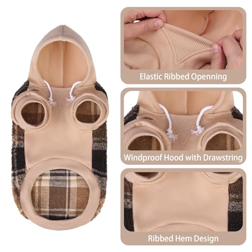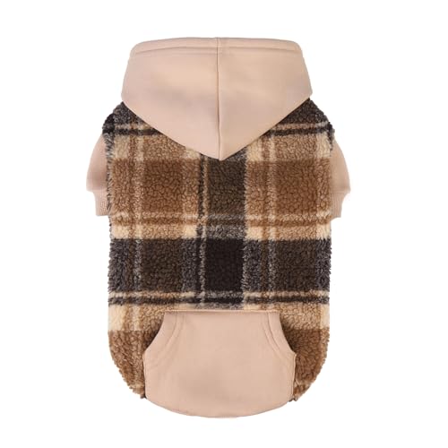 PUPTECK Dog Hoodie Puppy Sweatshirt Warm Dog Sweater Winter Clothes Cold Weather Coats for Small Medium Large Dogs, Brown, XS
