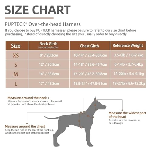 [IMPORTANT SIZE GUIDE] – [XS: Neck 8″, Chest 10″-14″], [S: Neck 12″, Chest 14″-18″], [M: Neck 14″, Chest 17″-20″], [L: Neck 17″, Chest 18.8″-24″]. Sizing does NOT directly correspond to your pet’s breed or weight, and do NOT order the usual size directly, please always measure your dog and refer to our brand size chart! [ATTENTION]: The neck is not adjustable, please make sure your dog’s head can through the harness.