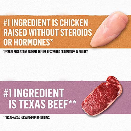 Feed your dog a duo of grain-free recipes with this Purina Beyond Grain-Free Ground Entrees adult wet dog food variety pack. We select only real, recognizable ingredients we can trace back to our trusted sources and craft each high protein wet dog food selection with 100 percent complete and balanced nutrition for your adult dog. Our Chicken, Carrot and Pea Recipe starts with real chicken raised without steroids or hormones* as the number 1 ingredient and is made with wholesome carrots and peas. Our Beef, Potato and Green Bean recipe has Texas beef as the number 1 ingredient (Texas-raised for a minimum of 100 days), along with hearty potatoes and green beans. Both high protein, grain free dog food selections include natural prebiotic fiber. With purposely selected ingredients with added vitamins and minerals, these grain free natural dog food recipes deliver the nutrition you want for your good boy. *Federal regulations prohibit the use of steroids or hormones in poultry.