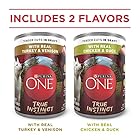 Give your dog an assortment of options at mealtime with this Purina ONE Natural True Instinct Tender Cuts in Gravy adult wet dog food variety pack with added vitamins, minerals and nutrients. Both of the natural recipes feature real poultry along with other high-quality ingredients you can feel good about giving to your canine companion. The tender, meaty texture gives him something to sink his teeth into, and a rich gravy balances out each of these delicious meals for added flavor and moisture. These high protein dog food formulas are made with no poultry by-products and no artificial flavors or preservatives. With 100 percent complete and balanced nutrition for your adult dog’s lifelong whole-body health, this canned food for dogs is a convenient way to satisfy his nutritional needs. Alternate between these two Purina ONE canned dog food entrees for variety in your dog’s daily diet, and show him just how much you care about his health and happiness with every delectable bite.