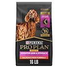 Keep your senior dog going strong with Purina Pro Plan Adult dog food for Sensitive Skin and Stomach Salmon and Rice Formula Adult 7+. This Purina Pro Plan Senior dry dog food includes targeted nutrition, including salmon as the #1 ingredient. Also included in this wholesome dog food for joint health is a combination of easily digestible oat meal and rice. Glucosamine and EPA to promote joint support and mobility. Your dog will benefit from the natural prebiotic fiber to nourish specific intestinal bacteria for healthy digestion. We fortify this senior dog food with antioxidants for dogs to boost immune function. To help nourish your dog’s sensitive skin, this salmon dog food features omega-6 fatty acid-rich sunflower oil for skin and coat health. This Purina Pro Plan adult dog food formula is made with no eggs, corn, wheat, soy, poultry by-product meal, or additional colors or flavors. We manufacture each bag of this high protein dog food in Purina-owned U.S. facilities.