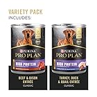 Pro Plan Sport High Protein Wet Dog Food Variety Pack delivers two delicious options. So you can surprise his novelty-seeking tastebuds by rotating two satisfying formulas, including Beef and Bison Entrée and Turkey, Duck and Quail Entrée options. And each formula has real meat or poultry as the first ingredients. So you can surprise him every day by serving it in between meals, on its own, or as a dry dog food topping. When he hears you open the convenient pull-top can, he’ll eagerly anticipate his next great performance-supporting meal. And these formulas are 100 percent complete and balanced for adult dogs. So every serving of these premium canned dog food formulas has 23 essential vitamins and moisture to support healthy hydration. Every bowl has antioxidants for a healthy immune system. Plus, Pro Plan Sport is the official performance dog food of Ducks Unlimited. So when you offer this to your dog, you’re giving him innovative nutrition that performs.