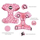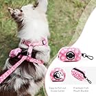 4 PCS Combo Set : Please accurately measure your dog and carefully select a harness by referring to the size chart. For a better fit for your adorable puppy, it is suggested that you choose a larger size. Package includes: 1 x Vest style dog harness, 1 x Leash and 1 x Dog collar,1 x Poop Bag Holder.