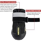 SECURE and ADJUSTABLE: Easy to put on / off. These dog shoes expands with a wide split seam opening and two adjustable and reflective straps to ensure a tight fit, also make your dog safe at night