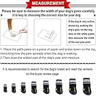 Please be sure to measure the width of your dog’s paws carefully, it is key to choosing the correct size for your dog, weight can only be used as an additional reference; Size 1: 1.7”x2.2”(W*L) for 12-23 lbs; size 2: 1.8”x2.4”(W*L) for 18-27 lbs; size 3: 2.0”x2.5”(W*L) for 23-33 lb; size 4: 2.2”x2.6”(W*L) for 31-40 lbs; size 5: 2.4”x2.8”(W*L) for 40-55 lbs; size 6: 2.6”x3.0”(W*L) for 52-65 lbs; size 7: 2.8”x3.2″(W*L) for 63-75 lbs; size 8: 3.0”x3.3″(W*L) for 74-88 lbs