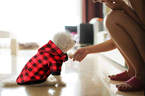 【Stylish and Cute Design】Our dog hoodie is made of fashionable plaid fabric. It’s a real hoodie with sleeves, hat and pocket. It’s perfect for cold months and full of festival atmosphere. It’s also necessary for family photos. We’re sure your dog will get tons of compliments on walks.