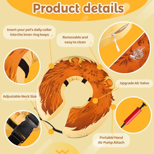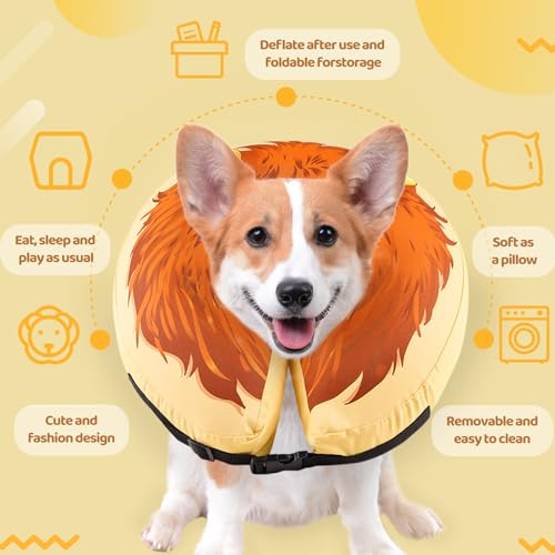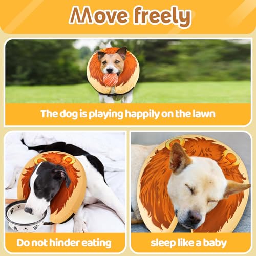 【PROTECTIVE AND HELP PETS RECOVER】This inflatable dog Lion King collar is a perfect dog cone alternative after surgery. The protective soft dog cone can prevent pets from licking wounds, sutures, injuries, rashes, and wounds after surgery, and it prevents pets from biting and licking their injured or surgical site, facilitating recovery from surgery or wounds.