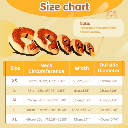 【Tips】To better fit your dog’s size, please measure your dog before purchasing.If your dog wants to run away when you put the collar on, you can encourage it with a few behaviors (give the dog treats, etc.)If the collar is a little large for your dog and easily falls off, please try to loop the daily collar with the recovery collar, it would be helpful to prevent the collar from falling off.