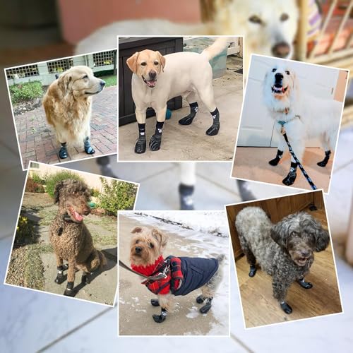 SCENEREAL Dog Boots Shoes & Paw Protectors, Anti Slip Dog Socks with Grippers to Prevent Licking Paws for Medium Senior Old Dogs, Waterproof Shoes for Snow Rain Hardwood Floor Cold/Hot Pavement