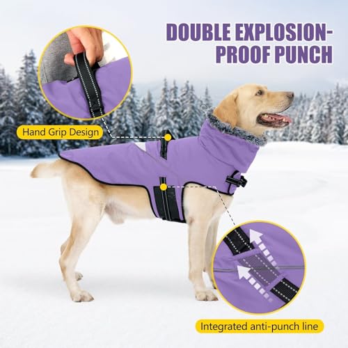 Soft Collar for Extra Warmth: This dog jacket boasts a luxuriously soft and insulating plush collar, providing your beloved pet with an extra layer of warmth and comfort. Our dog coats are lined with thick fleece, making them incredibly soft, comfortable, and skin-friendly. They are designed to keep your dog super warm during those chilly days.