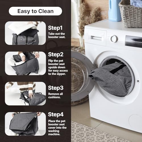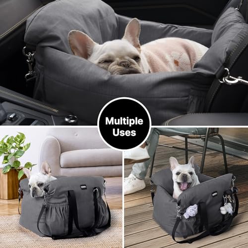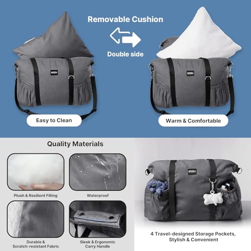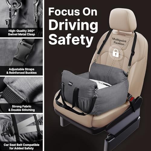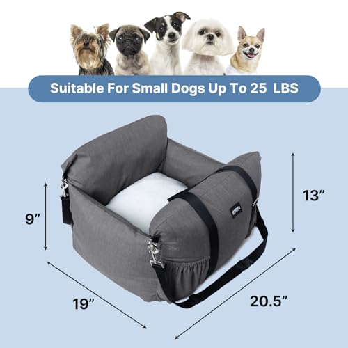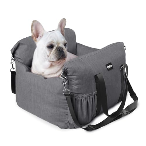 Small Dog Car Seat, Waterproof Dog Booster Seat for Car with Storage Pockets, Clip-On Leash, Detachable Washable Pet Carseat Puppy Travel Carrier Bed, Up to 25lbs, Grey