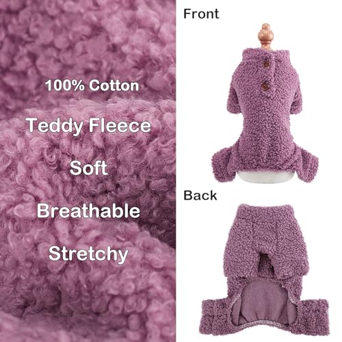 【Warm & Soft Fabric】: There teddy fleece dog pajamas maked of cotton blend, flannel fabric. The dog pjs is snug soft & comfortable; with the soft fluffy material will keep your dog extra warm on the particularity cold days. The pet small dog clothes with legs sweater outfit fit for small dogs female (girl) and male (boy).