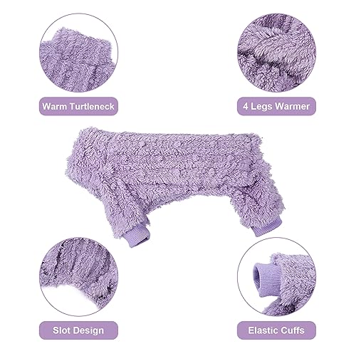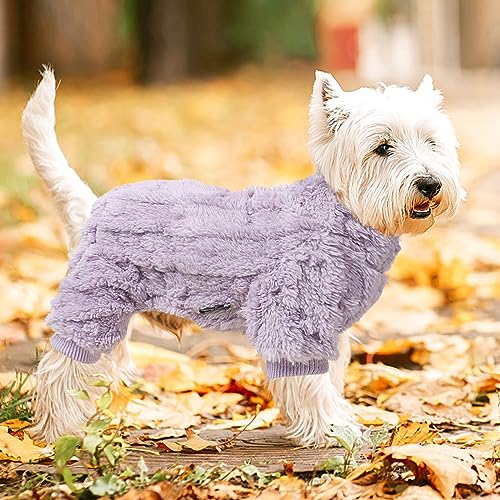 WARM & SOFT FABRIC – There fleece dog pajamas maked of cotton blend, flannel fabric. The dog pjs is snug soft & comfortable; with the soft fluffy material will keep your dog extra warm on the particularity cold days. The pet small dog clothes with legs sweater outfit fit for small dog female (girl) and male (boy).