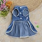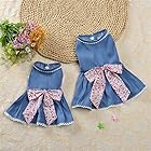 Uique Design :Blue washed denim with floral bows, elegant pastoral style,make your little furry princess looks adorable and charming