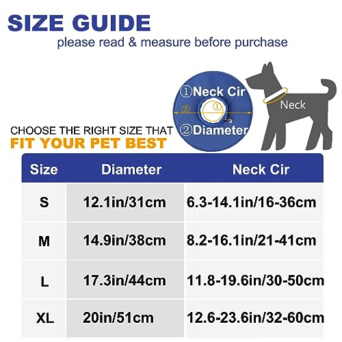 ❹√‹Lengthened Diameter & Wider Range of Adjustments›: The dog cones are wide and deep, make sure your pets won’t lick their bodies. Ajustable closure design enables dogs and cats cone easy to wear and adjust the tightness slightly. You can ajust it according to your pets sizes.