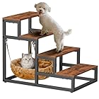 【WITH HANGING BASKET】This dog stairs with cat hanging basket can meet the needs of both cats and dogs, pet ladder with retro brown platform and black iron bracket, simple and elegant design to complement the decor of your bedroom, living room and other private Spaces.
